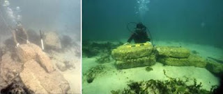 Dalam gambar itu terlihat, bangunan seperti gapura candi berdiri tegak. Tampak pula seorang penyelam berada di dekat lokasi. Gambar lainnya, ada candi yang tertutup karang-karang laut. Yang pasti di dekat candi ini ada proyek pembangunan terumbu karang buatan atau rumpon. Bisa jadi, candi ini bagian dari proyek tersebut.